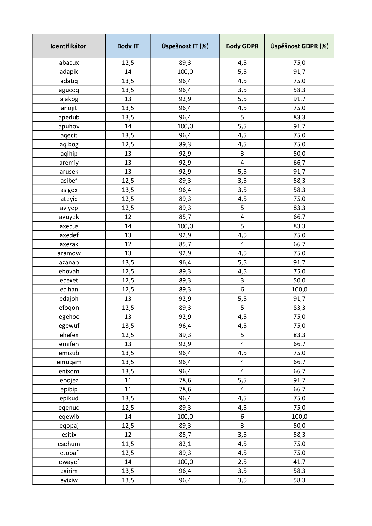Za oblast GDPR, která obsahovala 6 otázek, nedosáhlo potřebného počtu celkem 21 kolegyň a kolegů, které tak stejně jako za oblast IT čeká regulérní školení z této oblasti. O poznání nižší počet řešitelů (vůči části IT) dosáhl na plný počet bodů - jednalo se pouze o 6 osob.